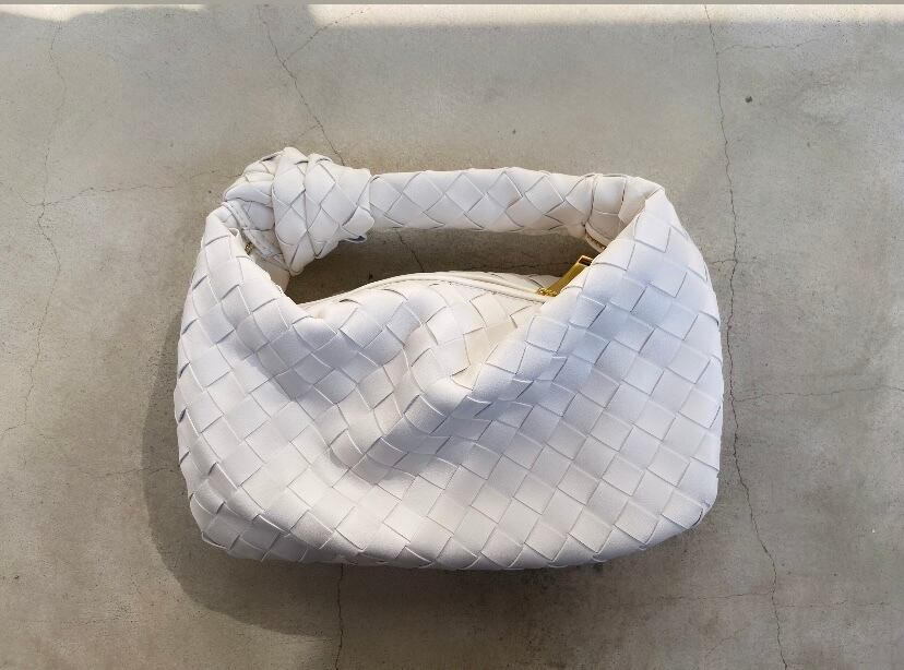 オールレザーの編み込みミニバッグ。