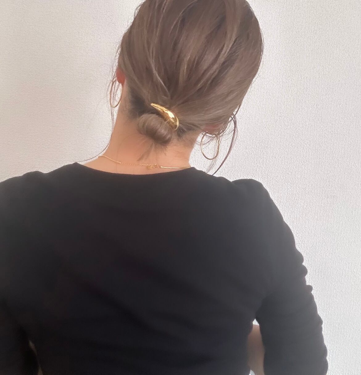 もちろん、無造作に結んだヘアの